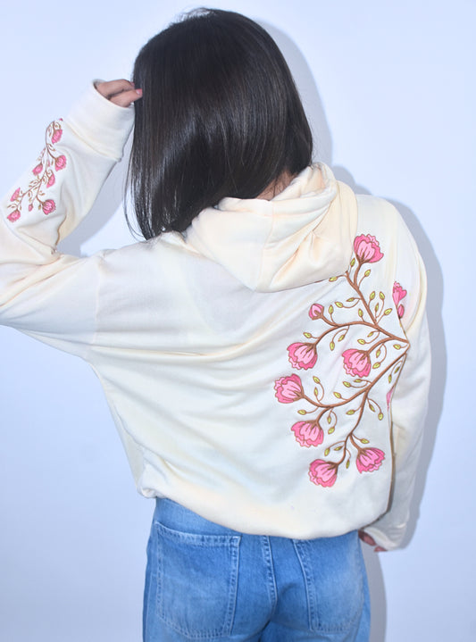 Eternal Bloom Hoodie Women – Beige, Handmade Limited Edition