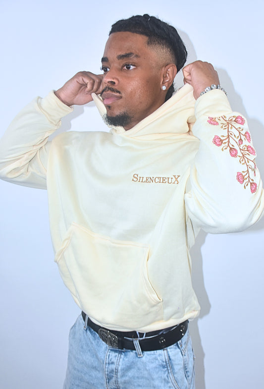 Eternal Bloom Hoodie Men – Beige, Handmade Limited Edition